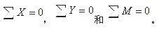 3.一般平面力系的平衡条件还要加上力矩的平衡,即作用在物体上的力对某点取矩时,顺时针力矩之和等于反时针力矩之和。平面力系的平衡条件是:![]()
