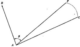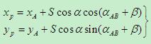 β —— 未知边AP与已知边AB的水平夹角,当未知边AP在已知边AB的右侧时,取“—β”。