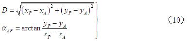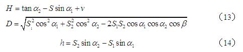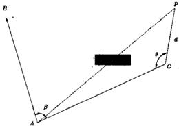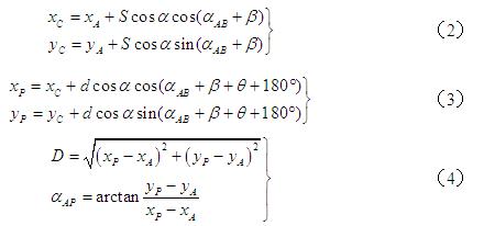 β —— 边AC与已知边AB的水平夹角,当β和θ为右角时,式(4)取“-β”和“-θ”。