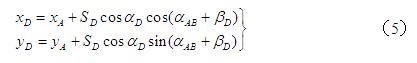 式中 βC、βD —— 边AC和AD与已知边AB的水平夹角,当未知边AC和AD在已知边AB的右侧时,式中取“-βC”和“-βD”。
