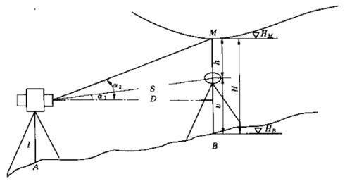 根据图形的几何关系可以推出M点到地面的高度H和M的高程HM: