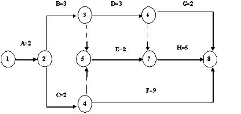 【答案解析】对于这种线路不复杂的网络图,可以采用枚举法计算各条线路长。其中最长线路即关键线路: