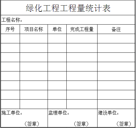 绿化工程工程量统计表适用于绿化工程中统计完成的工程量。