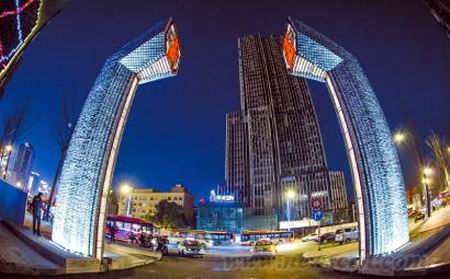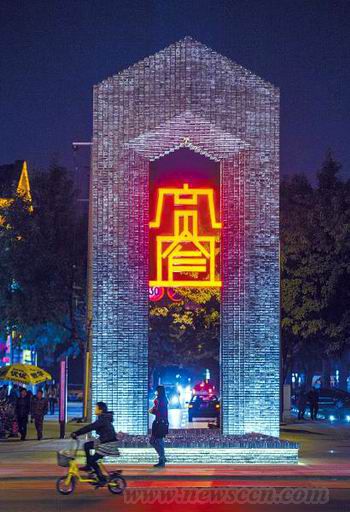 近日,在成都蜀道大道上,宽窄巷子的“宽门窄塔”标志建筑全新亮相。