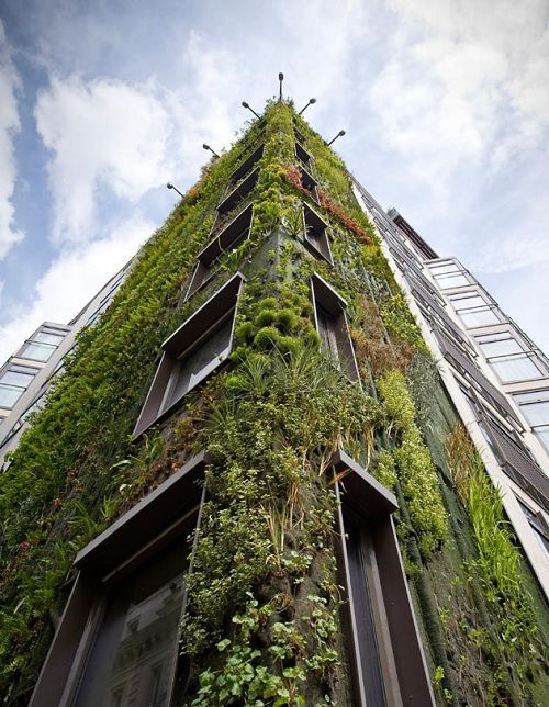 帕特里克布兰克(Patrick Blanc)是一位著名的法国植物学家,由他设计的诸多空中垂直花园系列作品得到了广泛好评,其中就包括葡萄牙一家购物中心里的一座垂直花园。这个花园面积比四个网球场的总面积还要大。另外还有为科威特所设计的一个垂直花园,也受到极大关注。但是,近期这位植物学家的作品却是历来规格最高的,他用绿色植物覆盖了8层楼高的英国伦敦雅典娜酒店,使其成为了一座壮观的空中花园。这座绿色公园由1.2万棵绿色植物组成,宛如一座脱离了引力限制的空中森林。