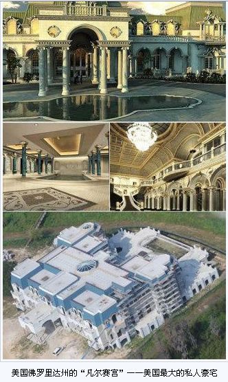 这座美国面积最大的家庭住宅坐落在佛罗里达州奥兰多市32公里外的温德米尔镇,于3年前开始动工,至今刚完成了外部结构工程,内部还未装修。