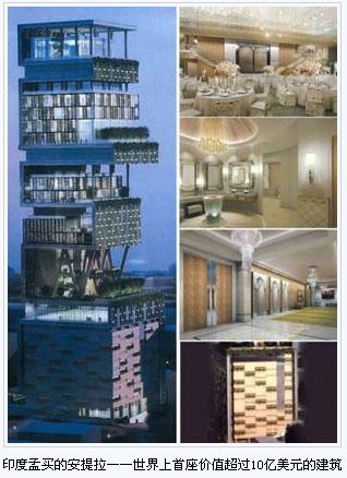 印度信诚工业集团董事总经理穆穆凯什·阿姆巴尼就是这座摩天大楼的拥有者。这位全球富豪榜排在第5位的超级富翁身家超过430亿美元。安提拉位于印度孟买市郊,据说这栋大楼花掉阿姆巴尼20亿美元!