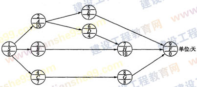 4.上述网络计划中,B工作的自由时差FF3为( )天。