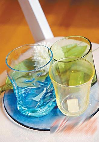 餐桌也可以营造轻松舒畅,令视觉上看上去感觉很清凉爽快的感觉。只要擅用蓝色或绿色玻璃器具,如海水蓝色的玻璃杯,草绿色的透明餐碟等,那清新的色彩已可令整体气氛变得从容舒畅,令视觉观感添上阵阵凉意。你也可以运用一些如植物装饰或摆设,为餐桌加点装饰打扮,为餐区营造大自然气息,效果更相得益彰。