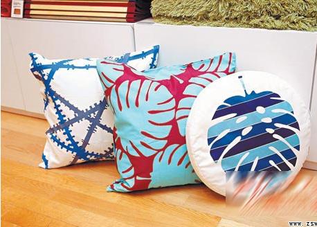 不同图案的蓝色布艺靠垫,均可带出不同的感觉气氛。