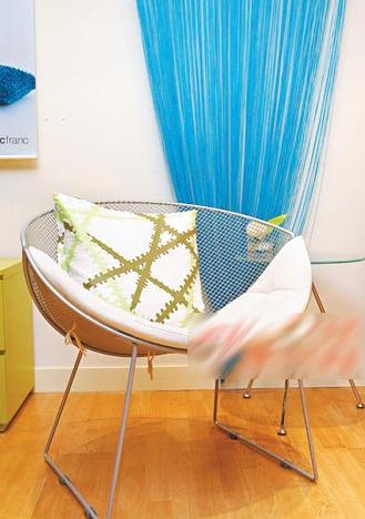 银色椅也可配衬蓝色图案靠垫,散发清新悠闲的感觉。