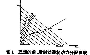 当制动器制动力足够时,制动过程中可能出现三种情况:①前轮先抱死拖滑,然后后轮抱死拖滑;②后轮先抱死拖滑,然后前轮抱死拖滑;③前后轮同时抱死拖滑。情况①是较稳定工况,但弯道行驶时,汽车失去转向能力,情况②使后轴侧滑,是不稳定工况,情况③可以避免后轴侧滑同时前转向轮只有在最大制动强度下才使汽车失去转向能力。