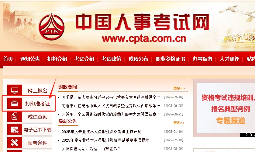 中国人事考试网-打印准考证: