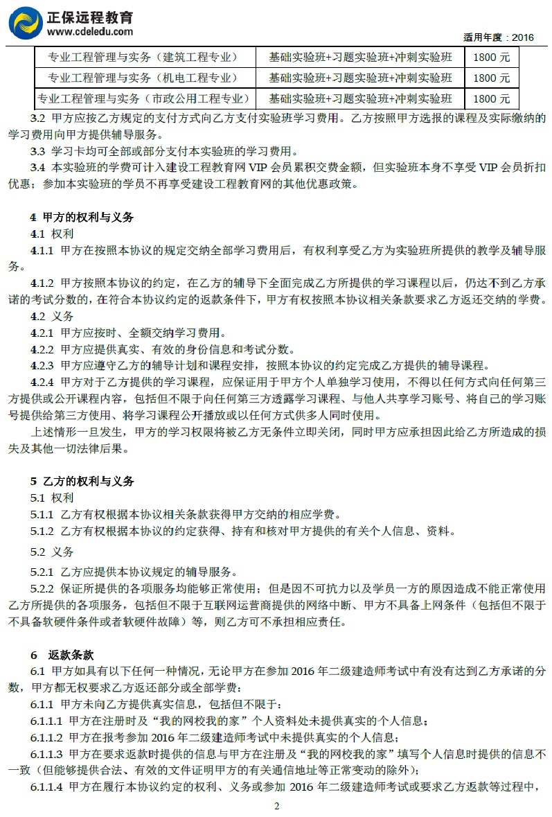 二级建造师“实验班”协议书