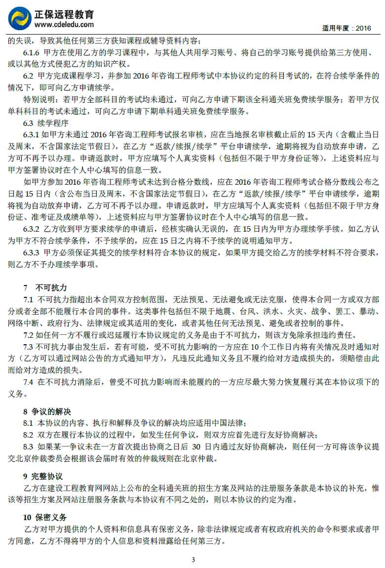 咨询工程师“全科通关班”协议书