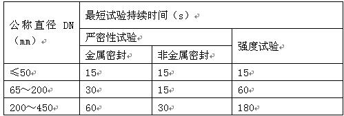 公称直径为50mm的阀门进行强度试验时,试验最短持续时间为( )s。