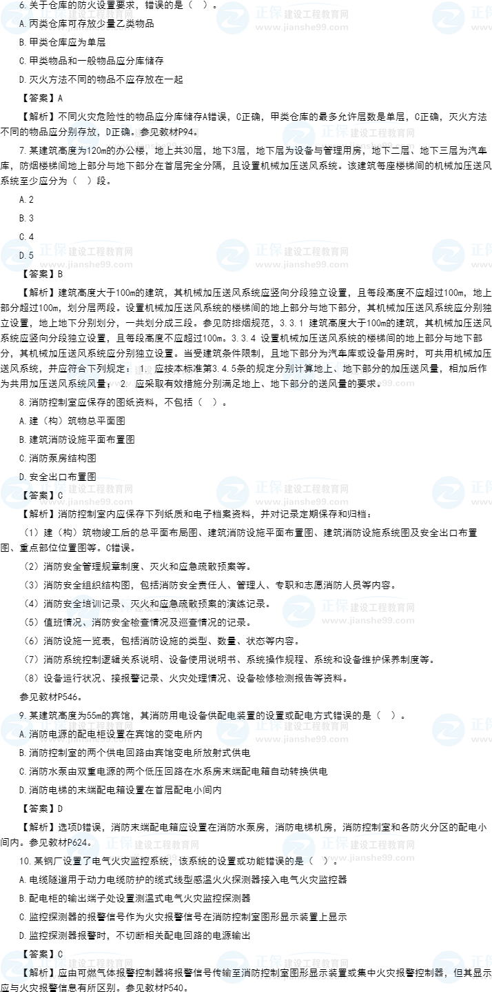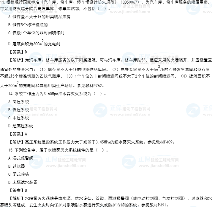 2021年一级消防工程师《消防安全技术实务》试题答案及解析1-15