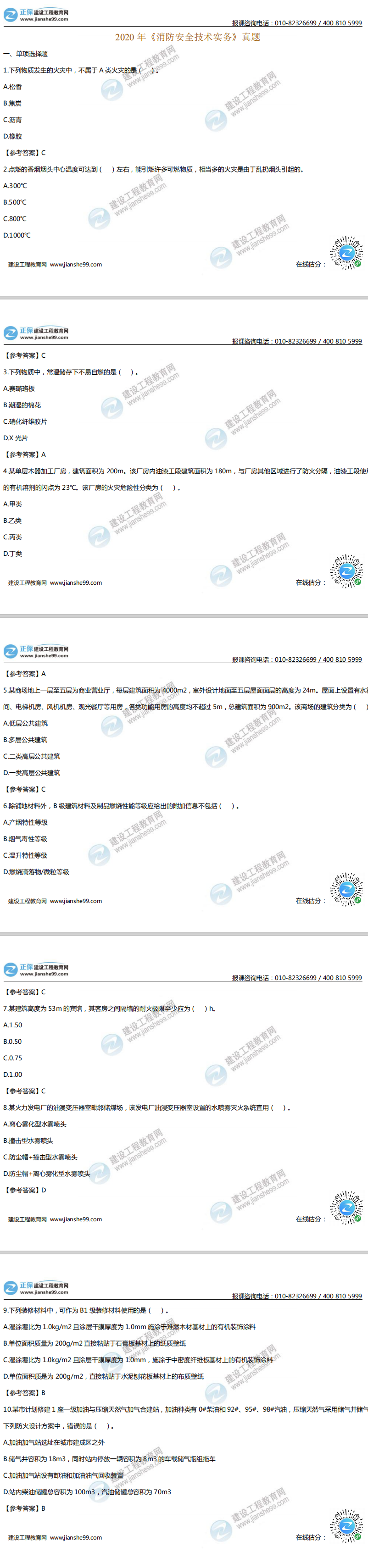 2020年一级消防工程师《技术实务》试题答案及解析1-10