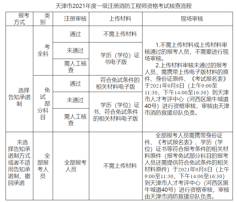 各地消防行业主管部门负责对报本行业“考全科”的考生进行资格审核,各地人社部门负责对报考“免1科”的考生进行资格审核。