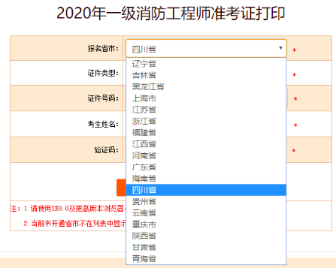 中国人事考试网 四川2020年一级消防工程师准考证打印入口开通