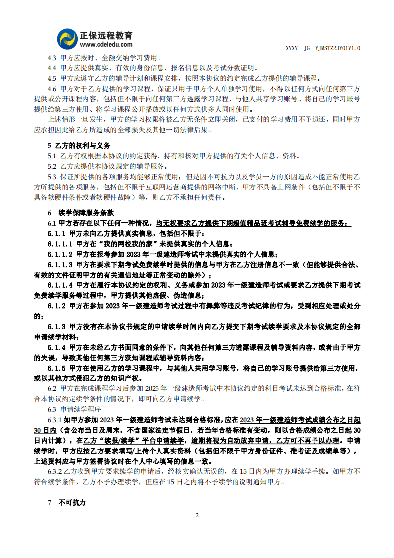 2023年一级建造师面授特招班协议书