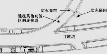 用于车辆疏散的辅助通道、横向联络道与隧道连接处应采用耐火极限不低于3.0h的防火卷帘进行分隔。
