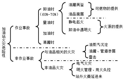 由于加油站收发的油品为汽油和柴油,加油站火灾除具备一般火灾的共性外,还具有油品易燃烧和油气混合气易爆炸的特殊性,若管理不当,容易发生火灾爆炸事故。加油站火灾事故,按其发生的原因不同可分为作业事故和非作业事故两大类。