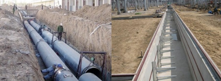 6.当采用电缆沟敷设电缆时,加油加气作业区内的电缆沟内必须充沙填实。电缆不得与油品、LPG、LNG和CNG管道以及热力管道敷设在同一沟内。