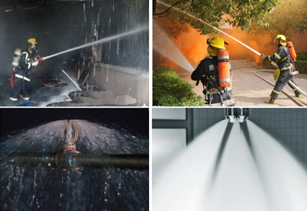 自动喷水-泡沫联用系统在喷水的同时喷出泡沫,泡沫覆盖于燃烧液体或固体的表面,在发挥冷却作用的同时,将可燃物与空气隔开,从而可以灭火。