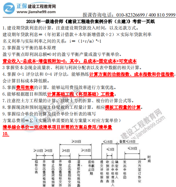 2019年一级造价师考试即将开考,为了帮助考生高效进行考前复习,拿到更多分数,争取顺利备考,建设工程教育网的老师们精心整理了“2019一级造价师考前一页纸”考前必备资料,免费发给大家,领取吧!