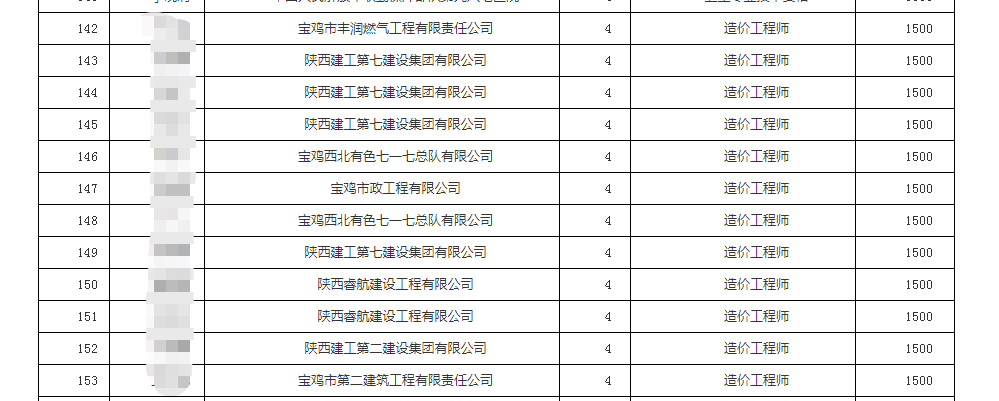 2021年02月宝鸡市一级造价师技能提升补贴人员名单公示