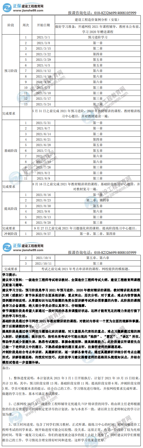 新的一年,新的开始。2021年一级造价师备考要怎么学习呢?有没有制定好学习计划呢?建设工程教育网制定了《2021年一级造价师安装案例全年学习计划》,以方便同学们对一级造价师学习进度进行全面把握。