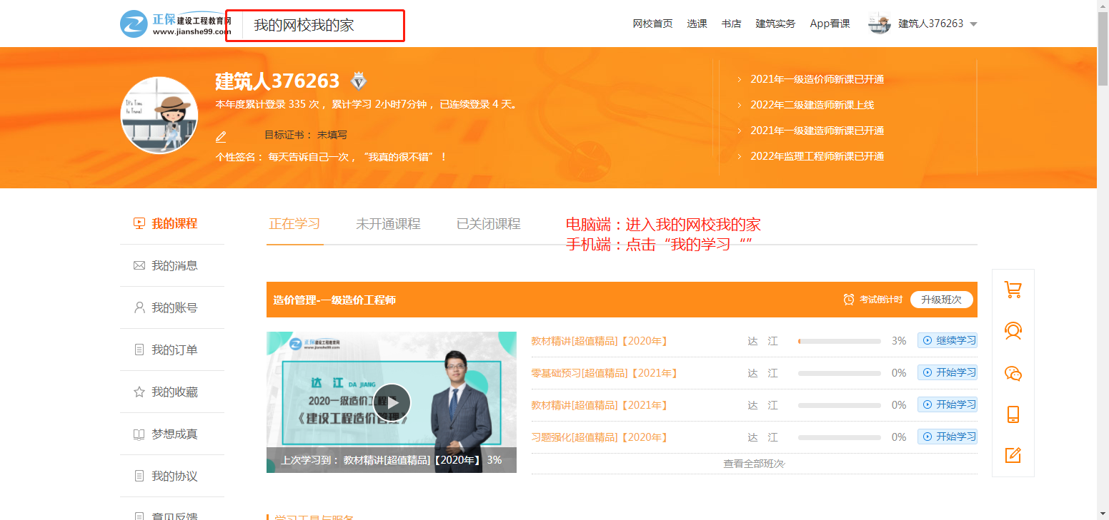 第一步:登录你的账号,点击“我的课程”——进入“我的网校我的家”