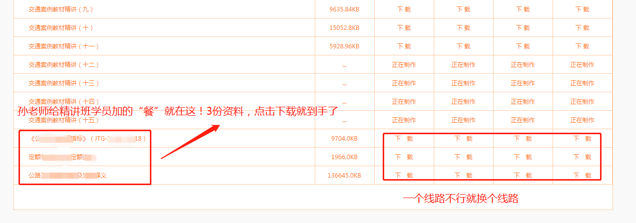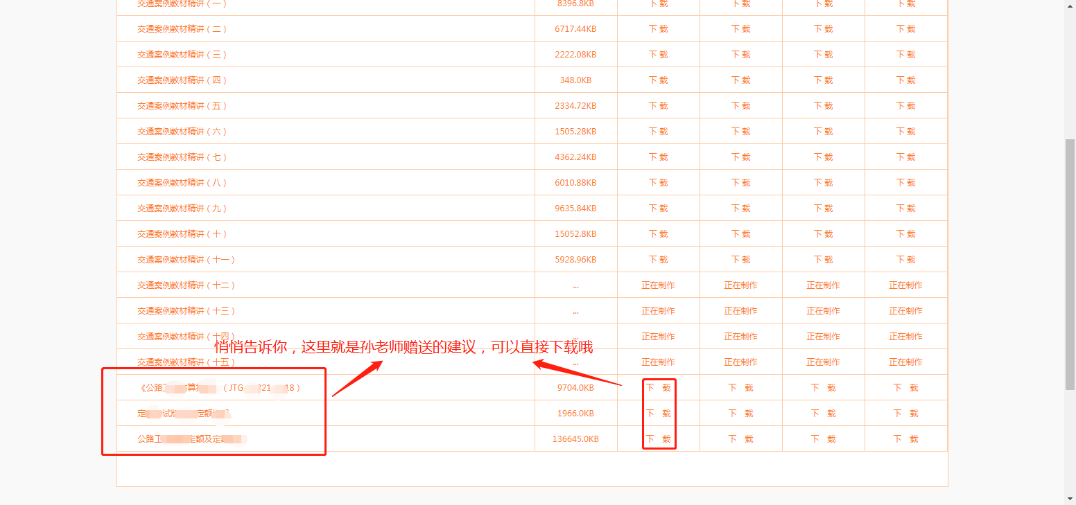 第六步:挖宝啦!孙老师赠送的资料就在下面,直接下拉这个页面,然后看到命名与众不同的3个讲义,就是它们!孙老师给建设网学员加的“餐”,直接点下载就行,按钮不好使就换个下载点。