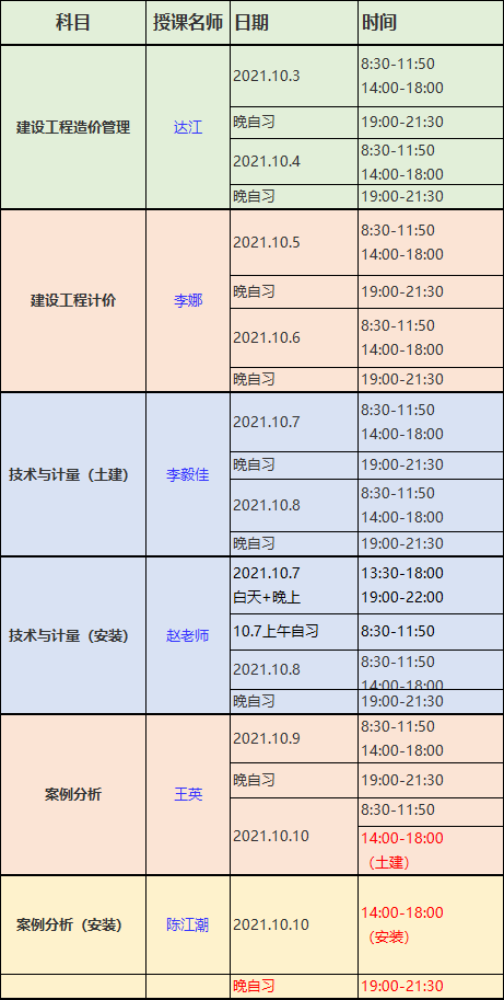 下面小编附上这几天的面授安排,注意上课时间哦~