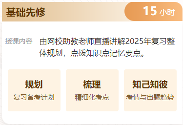 基础先修:由网校助教老师直播讲解2025年复习整体规划,点拨知识点记忆要点。
