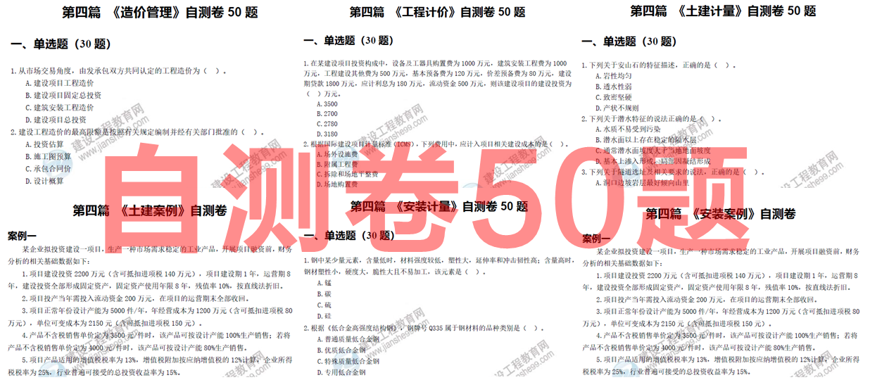 各科目精选自测题,实战体验试题难度,了解自己专业水平,早做准备。