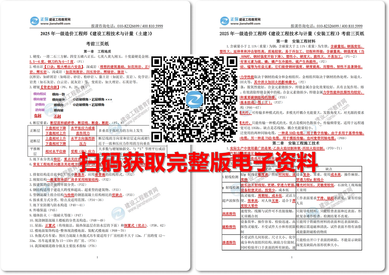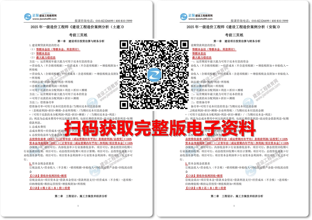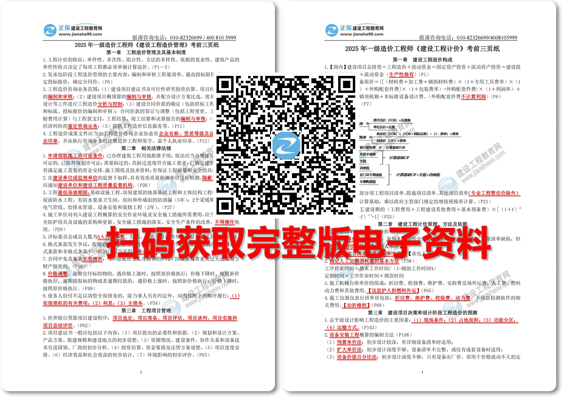 别再犹豫,抓住最后的备考时机。扫码免费领取考前三页纸,让它们成为你冲刺备考的加速器。相信自己,通过努力和科学备考,你一定能在2025年的一级造价师考试中取得优异的成绩!