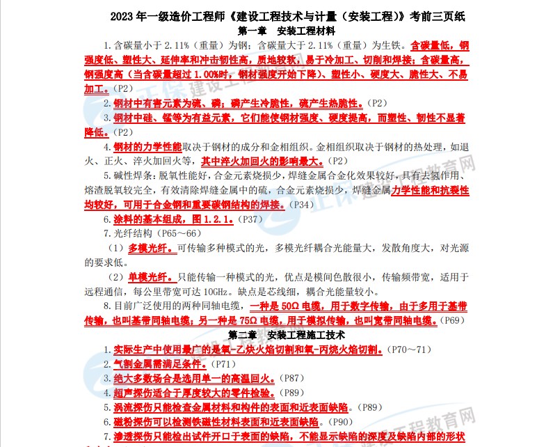 2023一级造价师考前三页纸部分截图,想要完整版进群领哦!