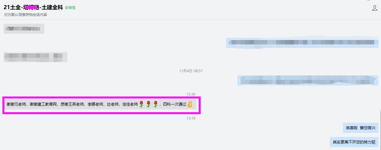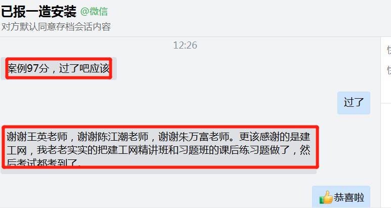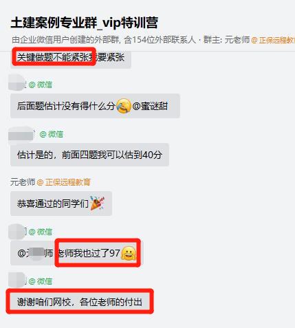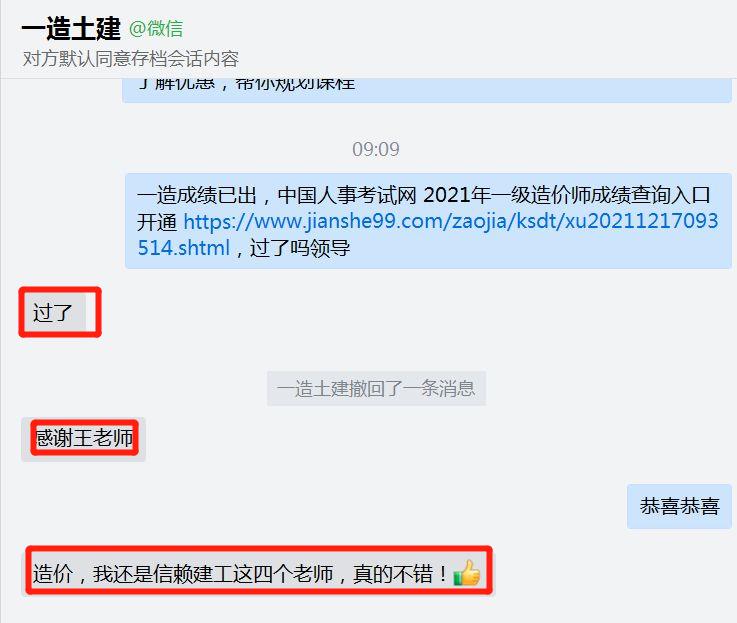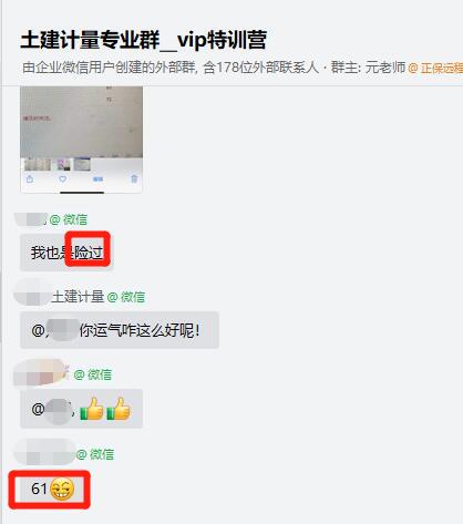 群里呼声一片,看到大家能顺利上岸,对网校老师也是称赞连连,这就是我们收到的最好的礼物,同时也恭喜大家顺利拿下此次一级造价师考试。