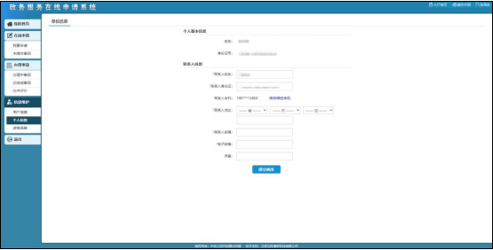 注册后需完善个人信息才可进行申报,弹窗提示后点击“完善信息”按钮,跳转到完善信息界面,依次输入联系人地址、联系人邮箱、电子邮箱等必填项信息,点击“提交修改”按钮,系统提示修改成功。