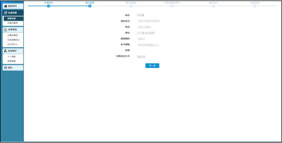 进入基本信息页面,确认申报人基本信息,点击下一步。