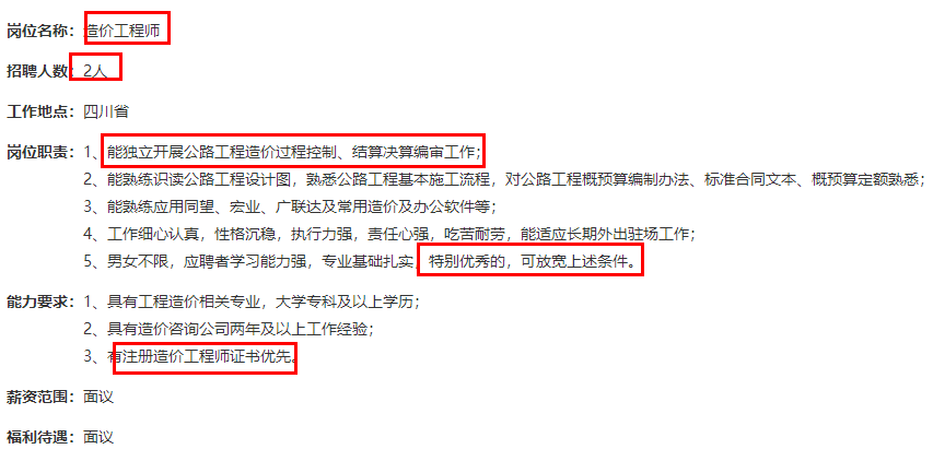 目前很多公司招聘造价工程师、项目经理等职位,都是会优先考虑有证书者,下面是某大型公司的招聘造价工程师的招聘简章,可以一起来看看!