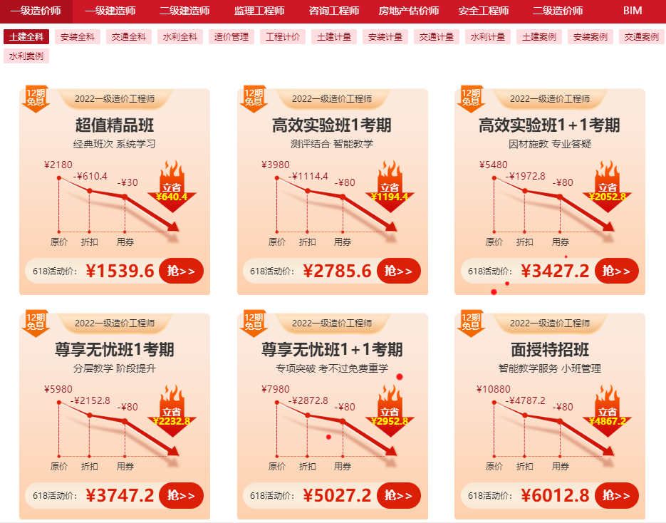 又是一年618,此刻大家一定在想要买些什么吧!买啥都不如来买课,无论何时提升自己才是硬道理,所以目前的你与其止步不前,不如痛下决心考个一级造价师证书!更何况现在是一年当中入手课程的绝佳时机,各位友友们一定不能错过。