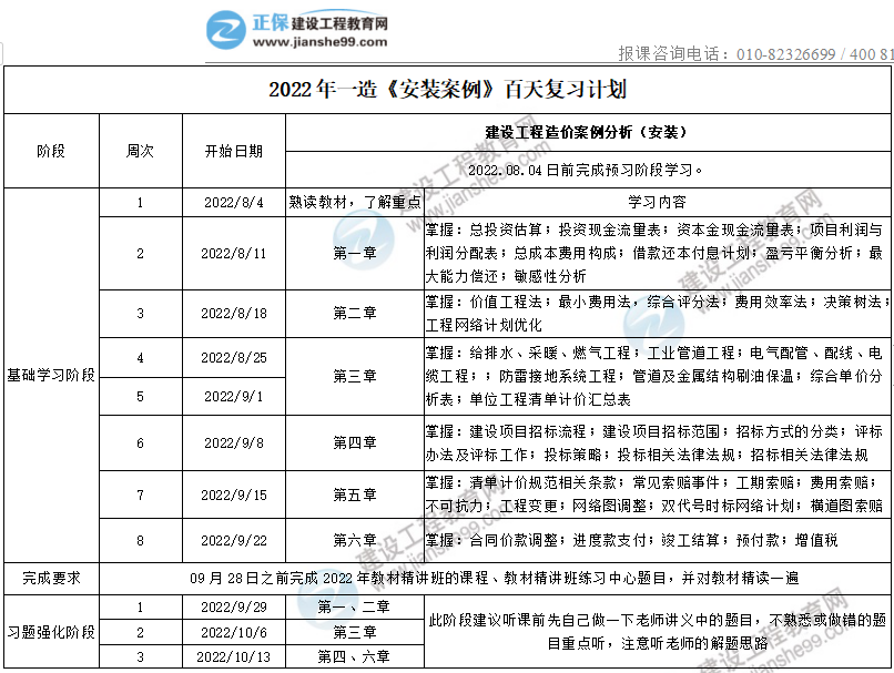 2022年一造《安装案例》百天复习计划