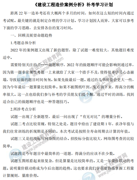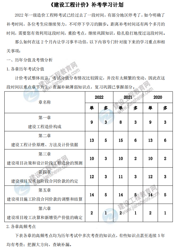 建设工程教育网教研团队整理了2022年一级造价师补考计划,速来免费领取吧!
