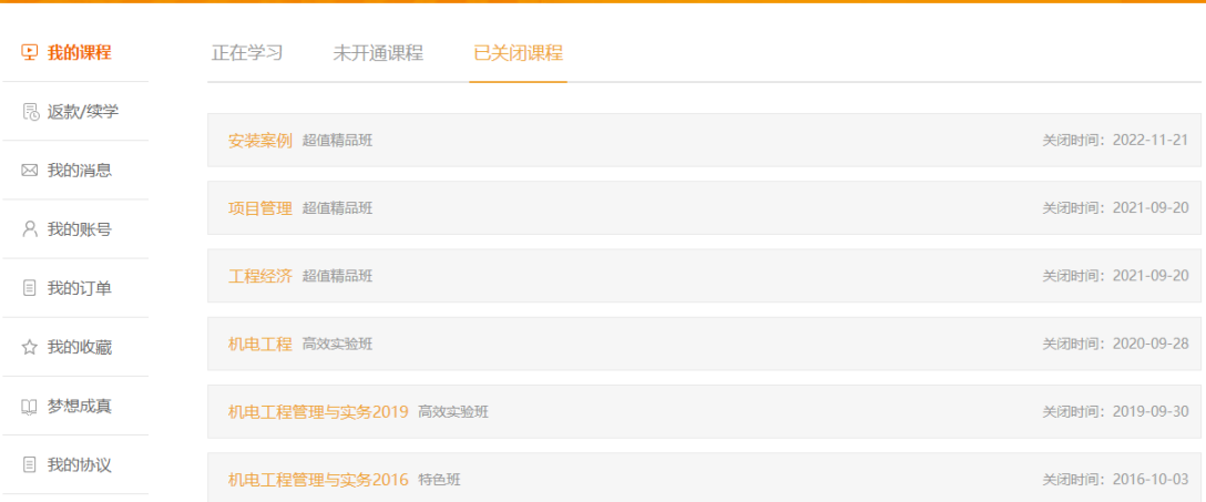 这是我这些年报的课程,在我的考证之路上给了我很大的帮助。现在手机端听课非常方便,还记得之前电脑端听课,需要到邮局邮寄学费,到手机听课、手机做题,也算是见证了网络教育的成长之路,希望建设工程教育网越办越好。