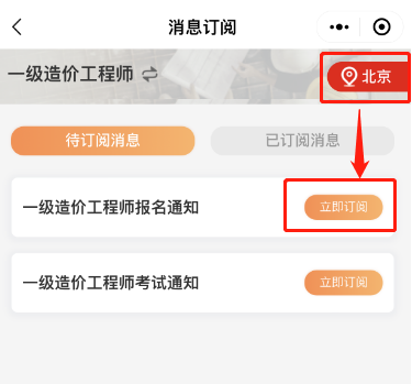 进入“建筑考试宝”,选择要报名的地区—选择一级造价工程师报名通知—点击“立即订阅”