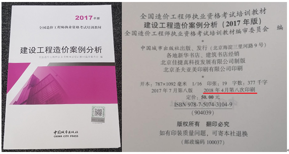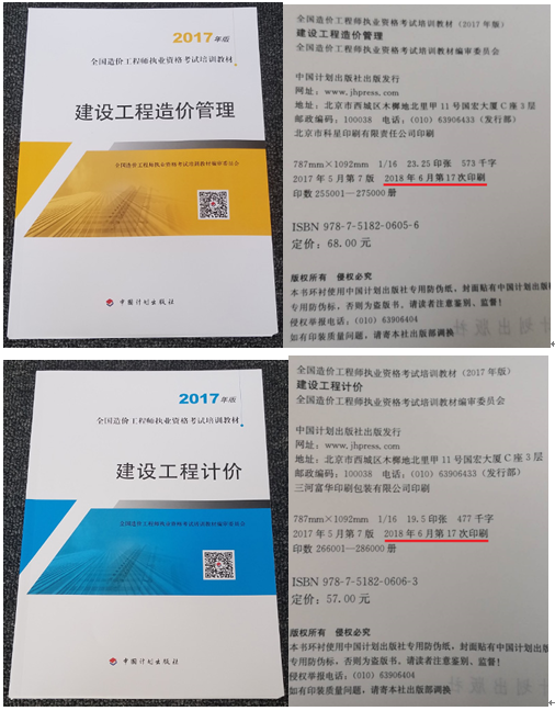 2018年造价工程师教材已新鲜出炉,其版本仍是沿用的2017版教材,其中计划出版社出版的《建设工程造价管理》、《建设工程计价》、《建设工程技术与计量(土建)》和《建设工程技术与计量(安装)》这4本教材没有任何变动,城市出版社出版的《建设工程造价案例分析》已按照去年公布的教材勘误表进行调整,其余地方没有变动。