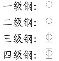 抗拉强度2800kg/cm平方也属1级钢筋,图纸上用圆圈中两竖的ф表示;